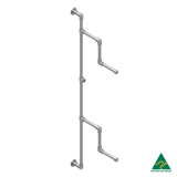 The Interclamp GR0011 is a wall mounted double bent arm key clamp garment rack system, commonly used within retail establishments to create vibrant and attractive clothing displays.