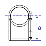 Butt joint for sloping sites, adjustable from 0° to 11°, often used to join intermediate uprights to top rails and middle rails to end uprights. This Interclamp cannot be used where through tube (sloping in photo) has to be joined within the fitting. Type 155 may often be used as an alternative.