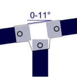 Adjustable for slopes from 0° to 11°, often used to join intermediate uprights to top rails and middle rails to end uprights. This Interclamp can be used where through tube (sloping in photo) has to be joined within the fitting. Normally used in conjunction with the 156 fitting. Type 153 may often be used as an alternative.