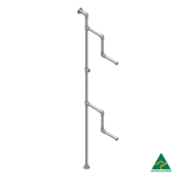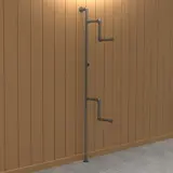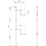 The Interclamp GR0001 is a floor and wall mounted double bent arm key clamp garment rack system, commonly used within retail establishments to create vibrant and attractive clothing displays.