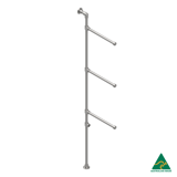 The Interclamp GR0006 is a grounded 3 straight arm key clamp garment rack system, commonly used within retail establishments to create vibrant and attractive clothing displays.