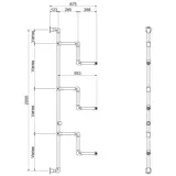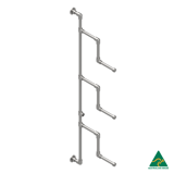 The Interclamp GR0013 is a wall-mounted triple bent arm key clamp garment rack system, commonly used within retail establishments to create vibrant and attractive clothing displays.