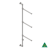 The Interclamp GR0016 is a wall-mounted triple straight arm key clamp garment rack system, commonly used within retail establishments to create vibrant and attractive clothing displays.