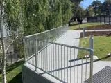 Safety balustrade constructed using Interclamp Pedestrian Barriers at a primary school to provide fall protection and keep pupils and teachers safe. The absence of a mid-rail also reduces the climbing potential.